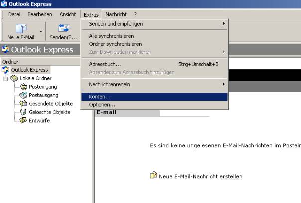 Die E-Mail-Einstellungen im Outlook Express 6 finden Sie im Menü